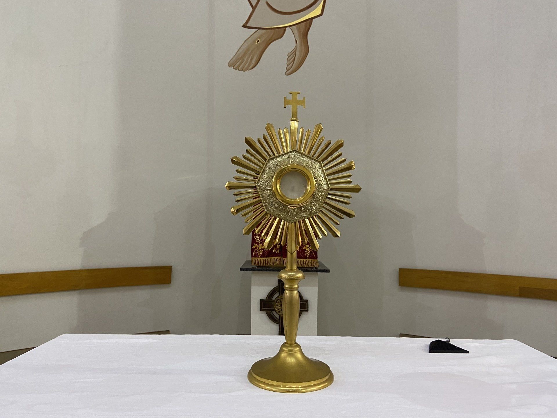 Prepare the Chalice, Ciborium and cruets for the celebration of Holy Mass.
